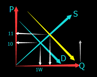 这3种趋势判断中最精准的是通过K线来;而30日均线向上还是向下是懒人做法,只是无法判断出横盘整理趋势,因为30日均线走势相对缓慢;而MACD指标精髓是在0轴上方的MACD死叉力度结合K线发现力度不足时,当它给出多头金叉信号时,力度会很给力。这点很重要,因为在恒指市场不需要像股票市场要要看成交量,因为股票在一个时段内大买单进来后市场能否顺应这个方向行走,如果一支股票在高位突然出现大买单,成交量放得很大但股价并没有相应的上涨反而下跌,说明有人在大笔抛售。解释:根据价格P、数量Q的象限45度向上是供给S,垂直S的是需求D,当供给不变情况下,需求提升了,则D线右平移与S形成新的交叉点,产生更高价格,数量即成交量同样增加,这是正常情况。但在出现大买家时价格理应上涨却反而下跌,说明市场中有人在大量抛售股票,股价就在下跌。这是为什么股票要看即时成效的原因,它相关这支股票的整体趋势,而不是K线均线这些,因为它们反应过去的走势,想知道未来走势要看市场当前的供需关系。恒指市场中,不需要这么复杂,通过指标交易就够了,不需要看现在有多少大单,有多少卖单,恒指市场当中研究当前的趋势你只需要对比当前多空力量的一个对比即可,比如通过MACD判断当前为空时,如果下跌无力,那么当指标转上涨时必然是有力的上涨,这点非常重要。