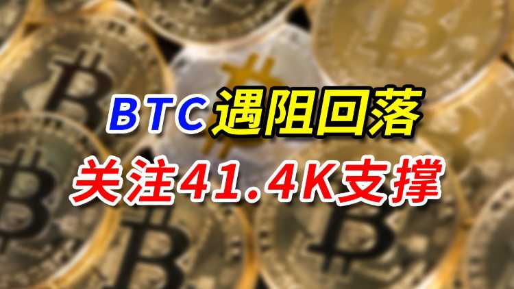 BTC遇阻回落,关注41.4K支撑