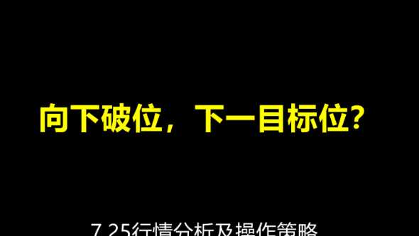 向下破位,下一目标位?|7.25行情分析及操作策略
