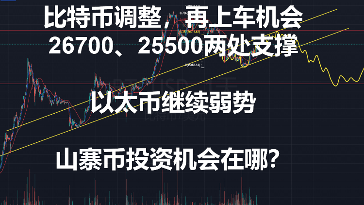 比特币调整,再上车机会26700、25500两处支撑,以太币继续弱势,山寨币投资机会在哪?