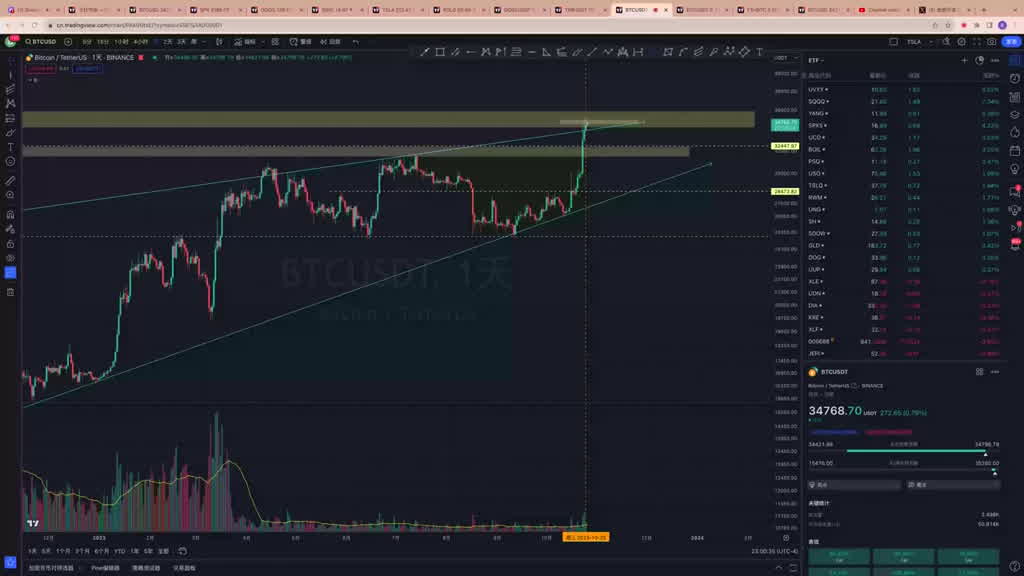 比特币36000攻坚战,激情四射,美股黯然失色,留意26-29日的变盘节点 - 金股币谈223期之币行天下- 20231025