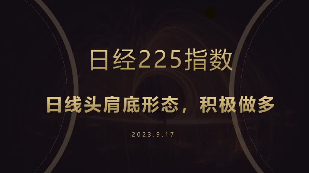 2023.9.17日经225指数日线图大型头肩底形态,积极布局多单