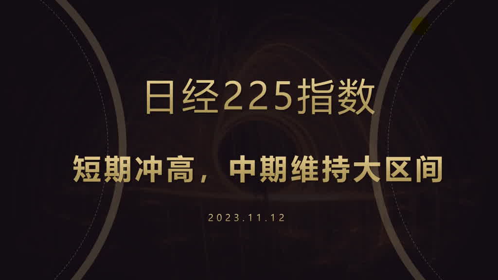 2023.11.12日经225指数短期继续冲高,长期保持大级别区间震旦观点不变