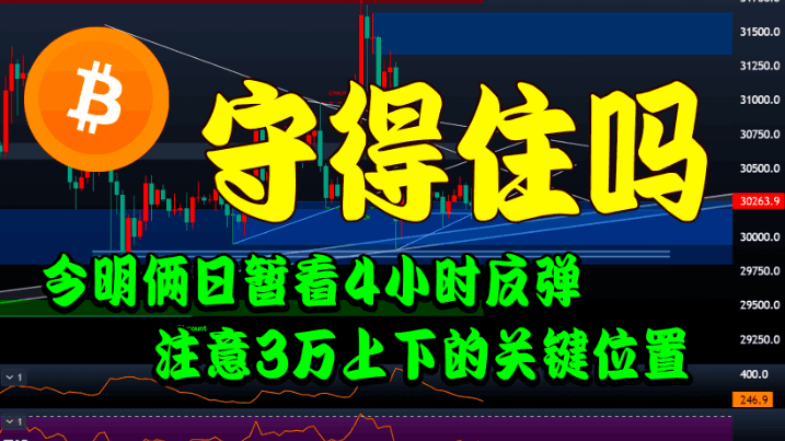 7.19-比特币行情:守得住3日线的回撤吗?今明俩日看4小时反弹,注意3万上下的关键位置