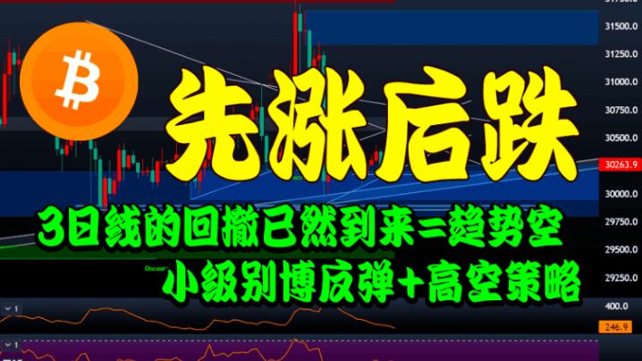 7.26-比特币行情:先涨后跌。3日线的回撤已然到来,趋势空,小级别博反弹,高位再空!