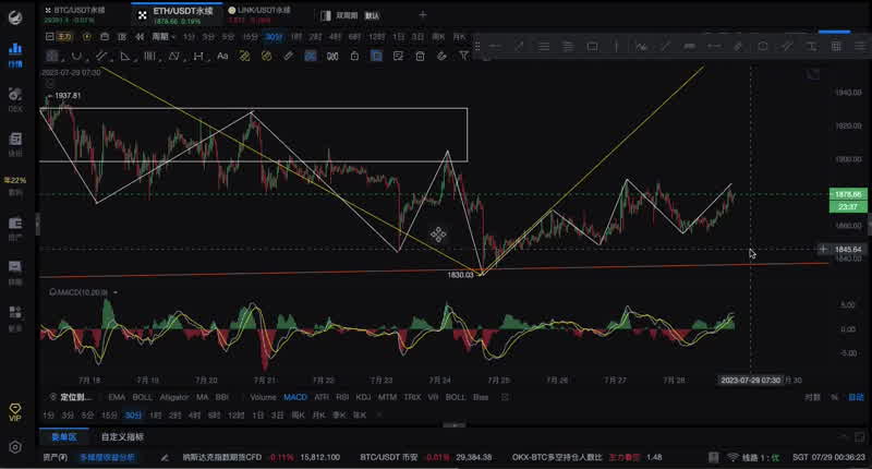 2023.7.29鲜哥缠论解析_比特币&以太坊