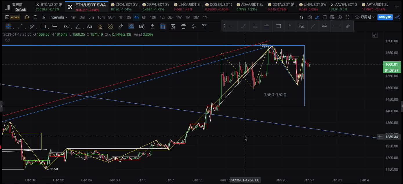 2023.1.26缠解大盘_BTC- ETH还需要调整,回踩可继续多