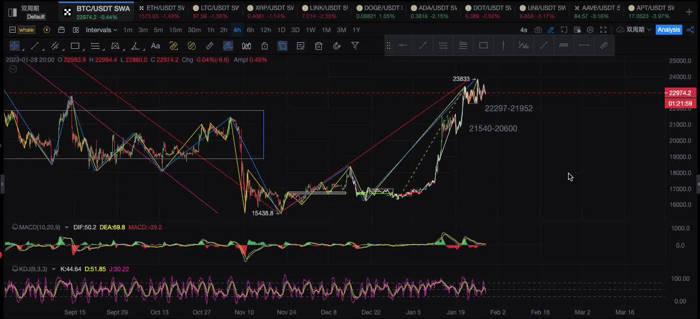 2023.1.28缠解大盘_BTC- ETH还有回踩需求,关注回踩多的机会