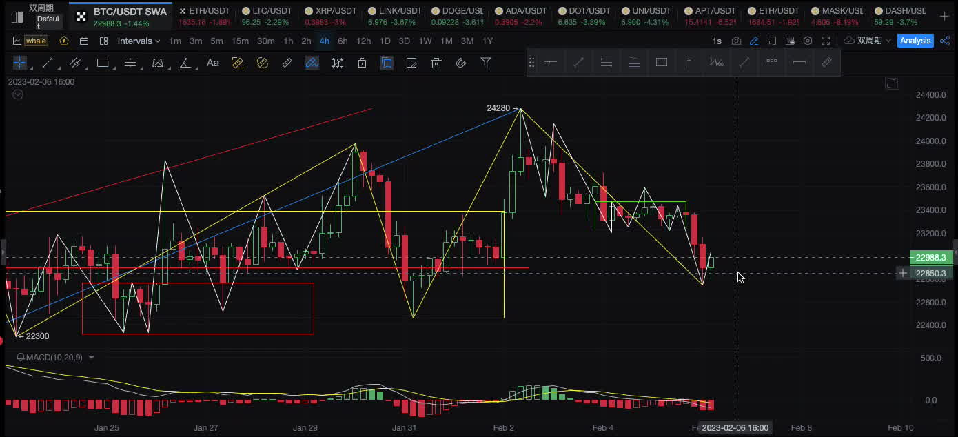 2023.2.6缠解大盘_BTC- ETH 4H下跌中,多单机会近在咫尺
