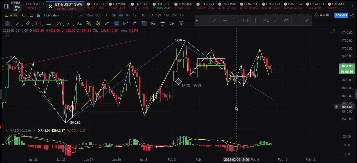 2023.2.9缠解大盘_BTC- ETH日线下跌中,交易策略回踩多