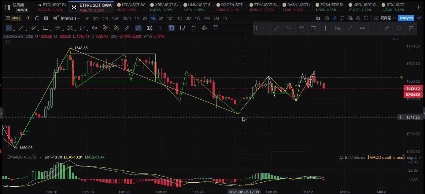 2023.3.2缠解大盘_【重点】BTC- ETH 进入多空分歧时期,4H和日线的多空机会已阐明