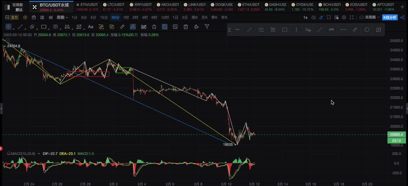 2023.3.11缠解大盘_BTC- ETH周、日下跌中,关注30F或者4H做空机会
