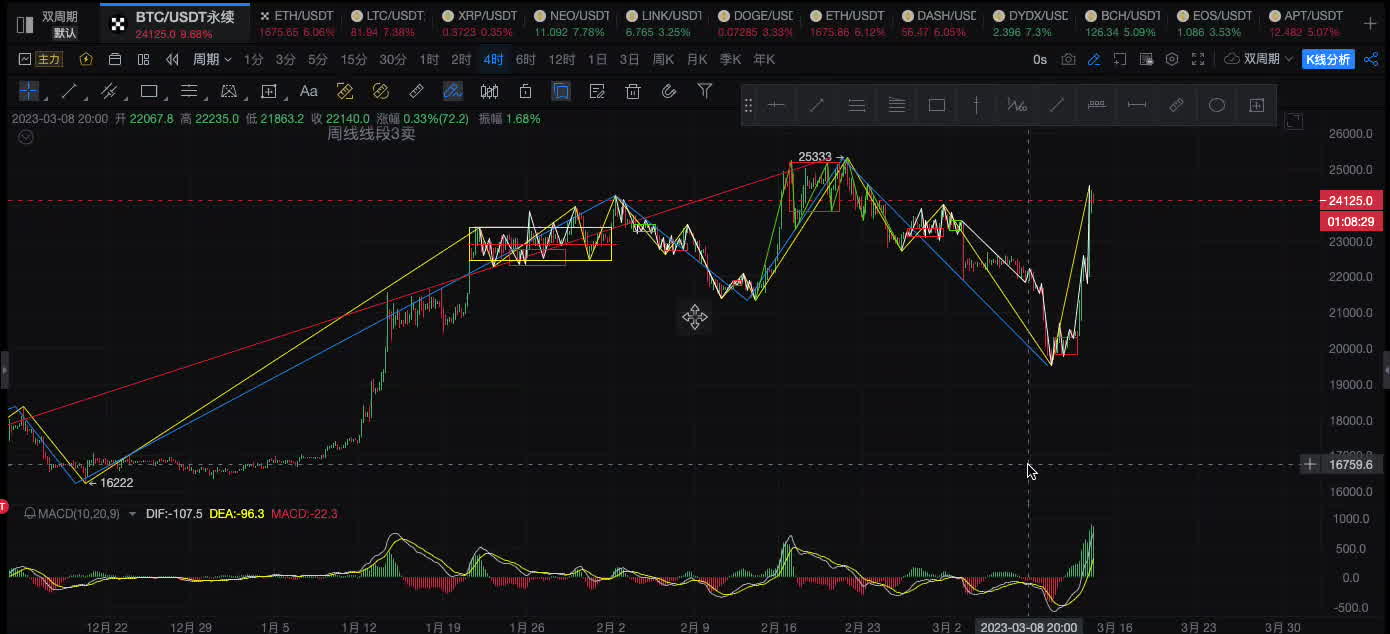 2023.3.14缠解大盘_BTC- ETH是否为日线涨,关注4H上涨笔终结做空机会