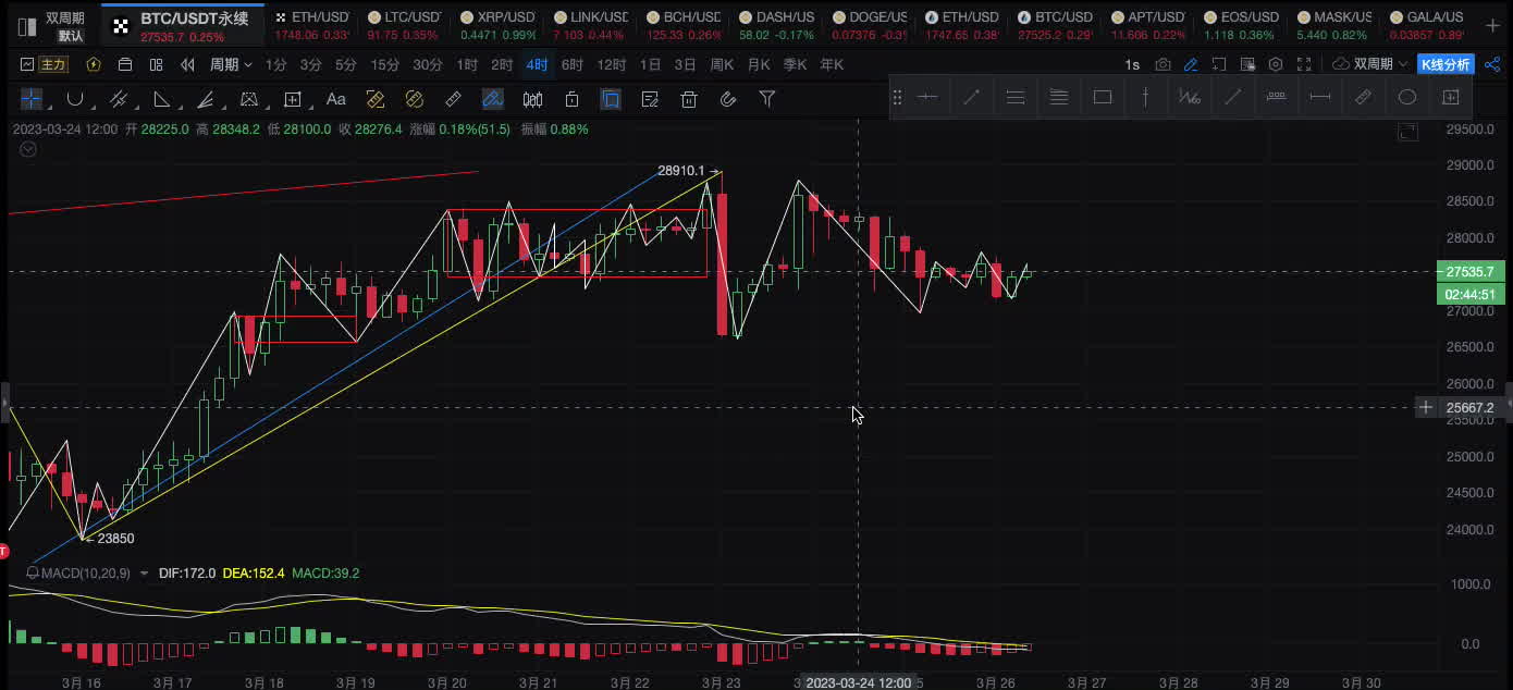 2023.3.26缠解大盘_BTC- ETH 4H区间中震荡,操作思路回踩多