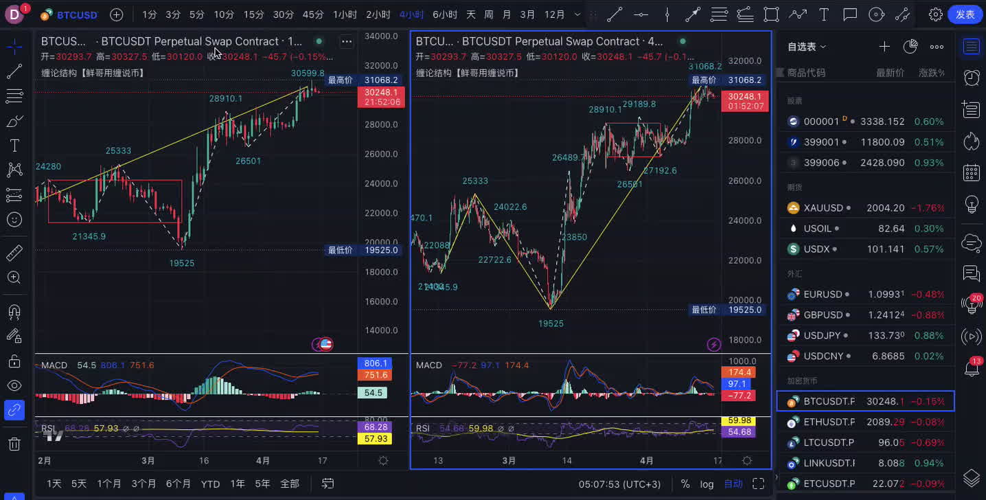 2023.4.16缠解大盘_大饼以太继续回踩多,黄金原油日线空的机会,美元指数日线多