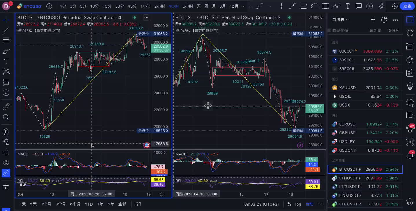2023.4.18缠解大盘_大饼以太继续回踩多,黄金原油等4H空.mp4