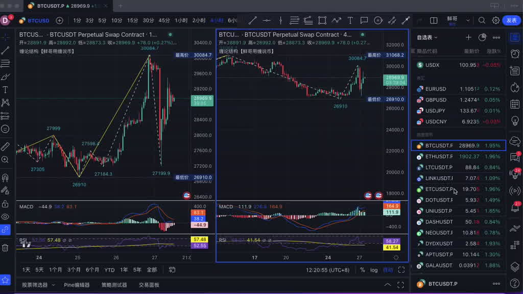 2023.4.27缠解大盘_大饼以太回踩多,黄金原油空,美元指数回踩多