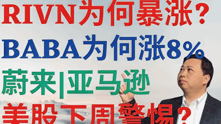 美股673RIVN为何暴涨,亚马逊,阿里巴巴被罚为何反而涨8%,蔚来,美股下周警惕