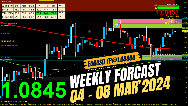 Weekly Forex #EURUSD Forecast For March 4 to 8, 2024 tp1 @ 1.08800 & tp1 @ 1.09300