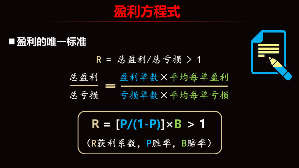 [4] In the long-term repeated trading operation process, you need to form a relatively fixed winning rate and odds combination that satisfies the profit equation, that is, you need to form a relatively fixed trading method.
