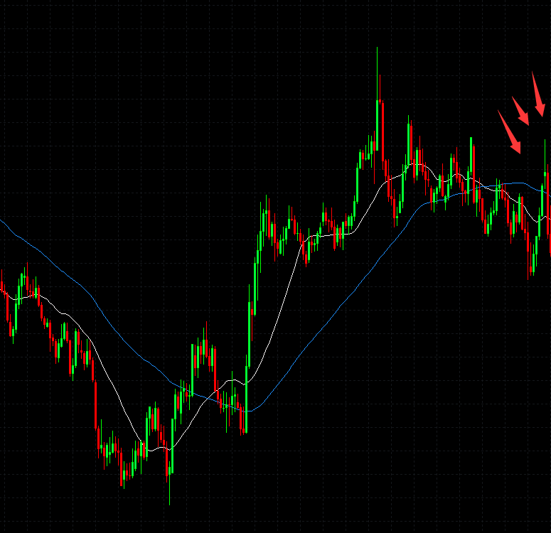 ​Three k in a row on the right form a reversal pattern. Yang k is a typical fake action, and the limit is raised. Then the funds began to enter the market to form the upper shadow line k, and finally the limit fell to lock the long order, and the whole fake action was completed, which is the reversal pattern. At this time, it is necessary to enter the market immediately. Although there is a high probability of a callback, if the direction is determined, one cannot hesitate. As long as the direction is clear, enter the market immediately regardless of the callback. Missing this wave because of hesitation will lead to a huge mental imbalance, which is a taboo.