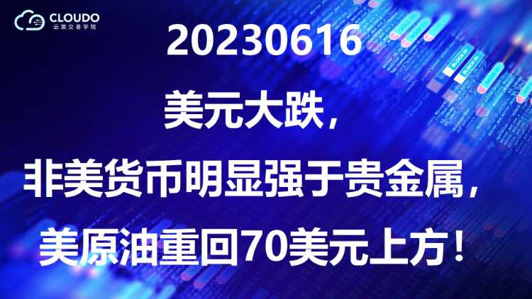 20230616-美元大跌,非美货币明显强于贵金属,美原油重回70美元上方!