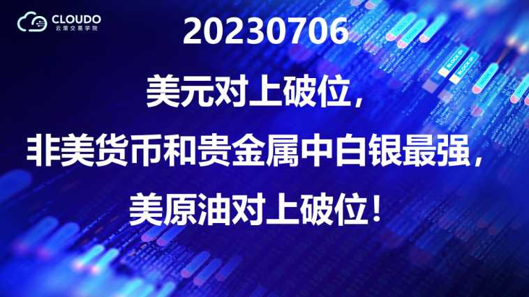 20230706-美元对上破位,非美货币和贵金属中白银最强,美原油对上破位!
