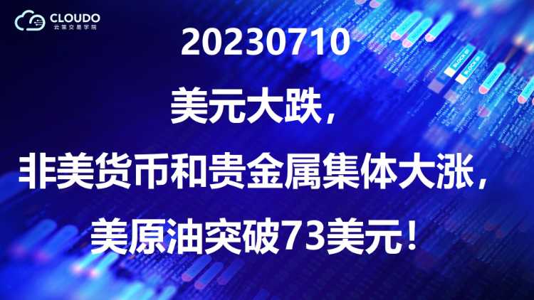 20230710-美元大跌,非美货币和贵金属集体大涨,美原油突破73美元!