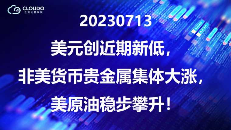 20230713-美元创近期新低,非美货币贵金属集体大涨,美原油稳步攀升!