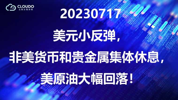 20230717-美元小反弹,非美货币和贵金属集体休息,美原油大幅回落!