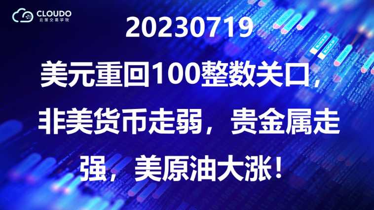20230719-美元重回100整数关口,非美货币走弱,贵金属走强,美原油大涨!