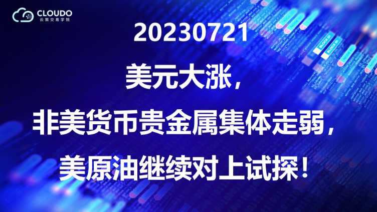 20230721-美元大涨,非美货币贵金属集体走弱,美原油继续对上试探!