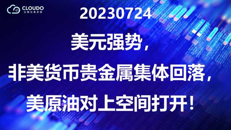 20230724-美元强势,非美货币贵金属集体回落,美原油对上空间打开!