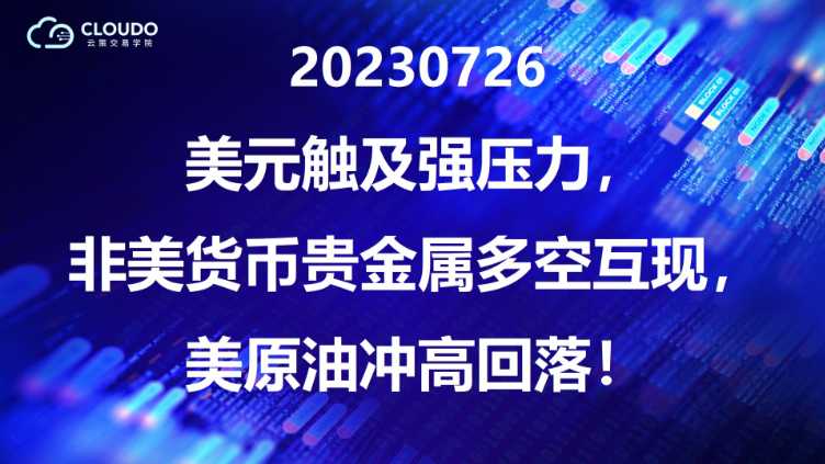 20230726-美元触及强压力,非美货币贵金属多空互现,美原油冲高回落!