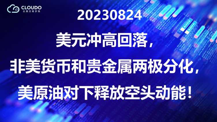 20230824-美元冲高回落,非美货币和贵金属两极分化,美原油对下释放空头动能!
