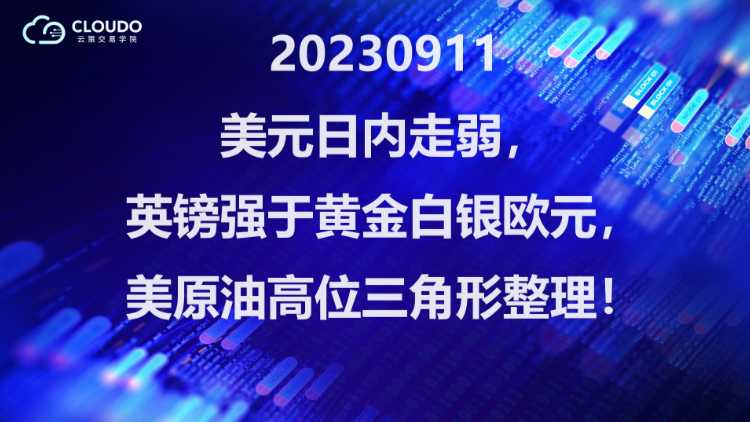 20230911-美元日内走弱,英镑强于黄金白银欧元,美原油高位三角形整理!