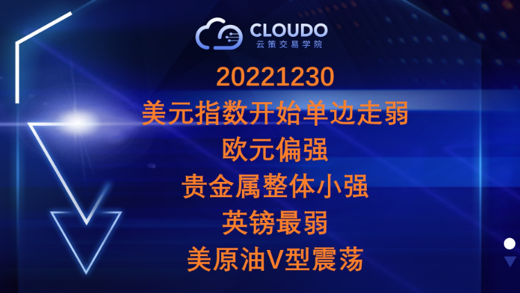 20221230-美元指数开始单边走弱,欧元偏强,贵金属整体小强,英镑最弱,美原油V型震荡