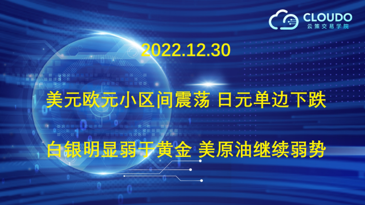2022.12.30 美元欧元小区间震荡 日元单边下跌 白银明显弱于黄金 美原油继续弱势