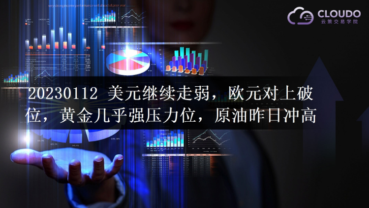 20230112-美元继续走弱,欧元对上破位,黄金几乎触及底部对上黄金分割2.382位,原油昨日冲高