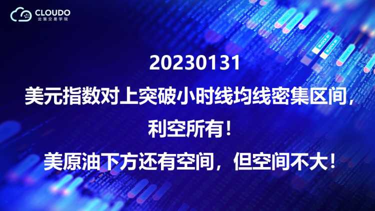 20230131-美元指数对上突破小时线均线密集区间,利空所有!美原油下方还有空间,但空间不大!