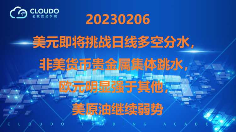20230206-美元即将挑战日线多空分水,非美货币贵金属集体跳水,欧元明显强于其他,美原油继续弱势