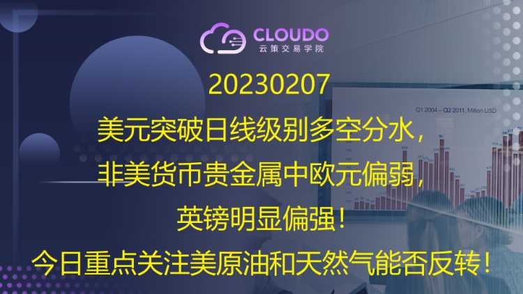20230207-美元突破日线级别多空分水,非美货币贵金属中欧元偏弱,英镑明显偏强!今日重点关注美原油和天然气能否反转!