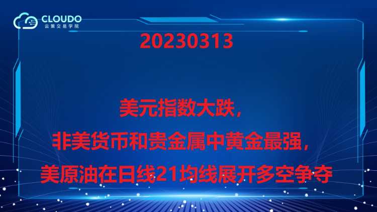 20230313-美元指数大跌,非美货币和贵金属中黄金最强,美原油在日线21均线展开多空争夺
