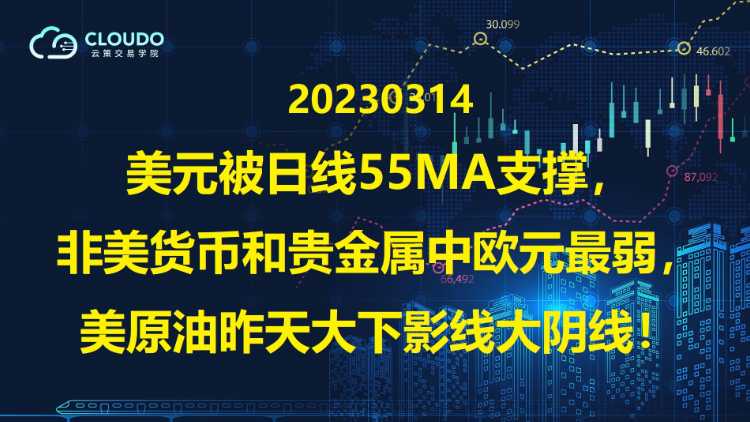 20230314-美元被日线55MA支撑,非美货币和贵金属中欧元最弱,美原油昨天大下影线大阴线