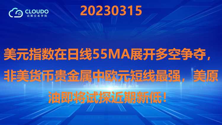 20230315-美元指数在日线55MA展开多空争夺,非美货币贵金属中欧元短线最强,美原油即将试探近期新低!