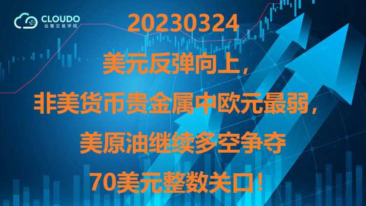 20230324-美元反弹向上,非美货币贵金属中欧元最弱,美原油继续多空争夺70美元整数关口