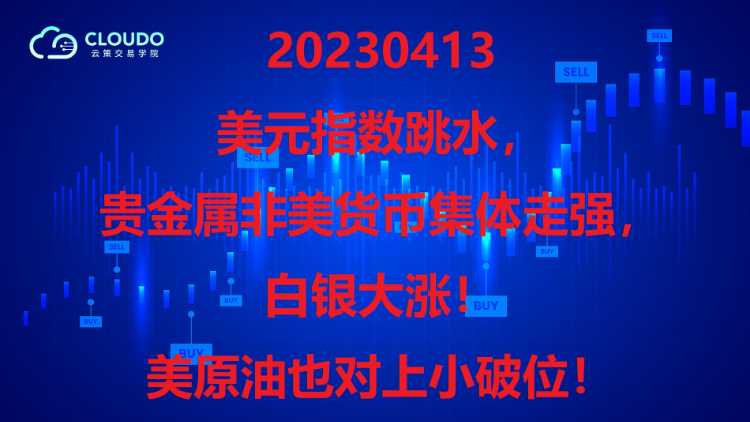 20230413-美元指数跳水,贵金属非美货币集体走强,白银大涨!美原油也对上小破位!
