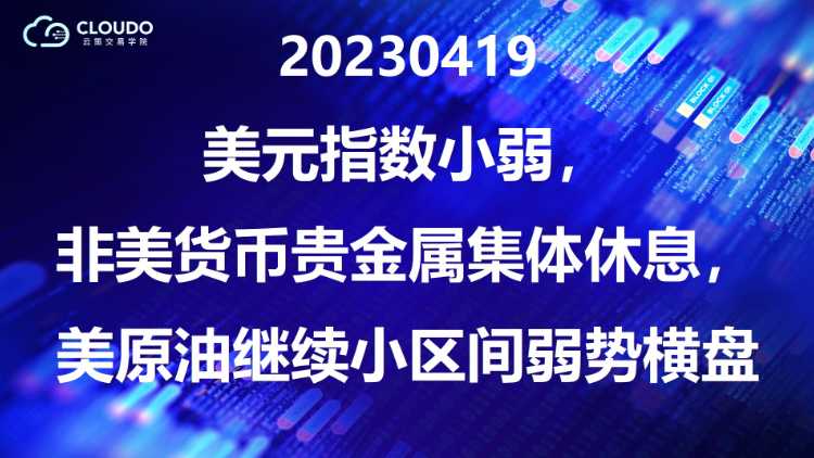 20230419-美元指数小弱,非美货币贵金属集体休息,美原油继续小区间弱势横盘