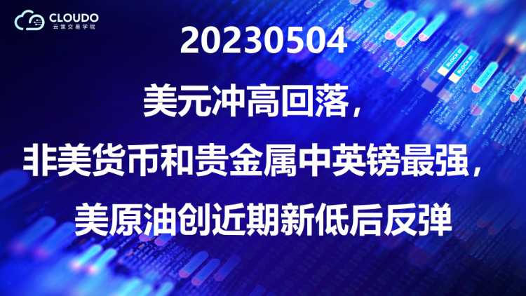 20230504-美元冲高回落,非美货币和贵金属中英镑最强,美原油创近期新低后反弹