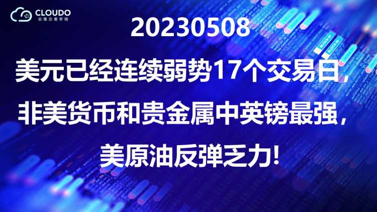 20230508-美元已经连续弱势17个交易日,非美货币和贵金属中英镑最强,美原油反弹乏力